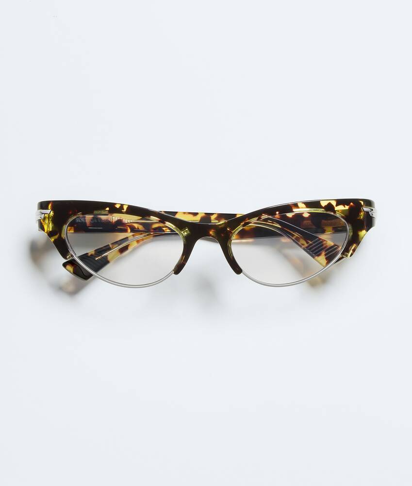 • Cat eye sunglasses made with Eastman Acetate Renew, an acetate with 27% recycled content • Metal rim detail at the bottom • Metallic ribbon detail at the temples • Lenses made from polyamide with 39% bio-based content • BV1431S 010