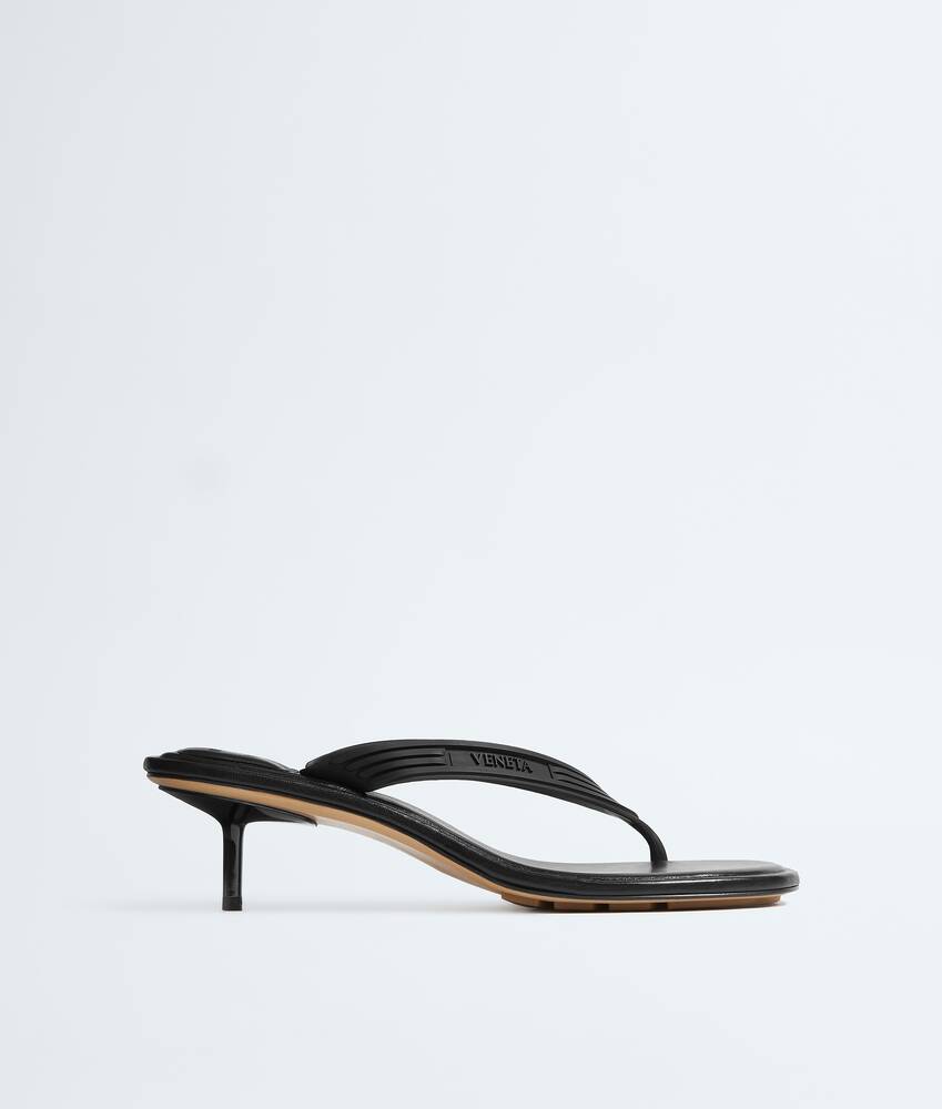 ソフトナッパレザーのインソールが付いた、マットラバーのキトゥンヒール トングサンダルです。