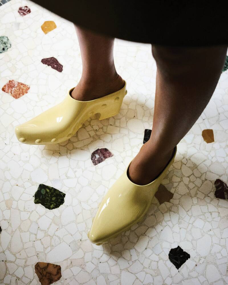 コアキシャルコードのディテールとアイコニックなメタルのトライアングル装飾が付いた、カーフレザーのアンクルブーツです。