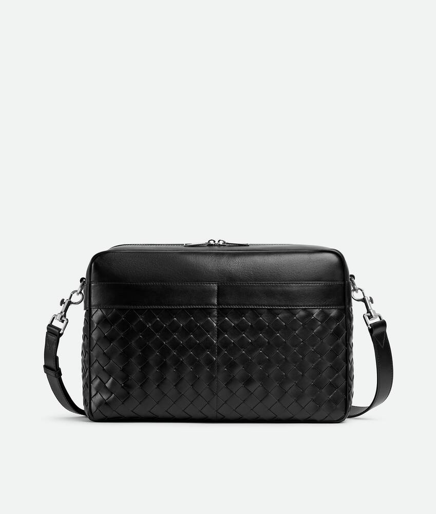 取り外し可能なストラップが付いた、イントレチャートレザーのクロスボディバッグです。