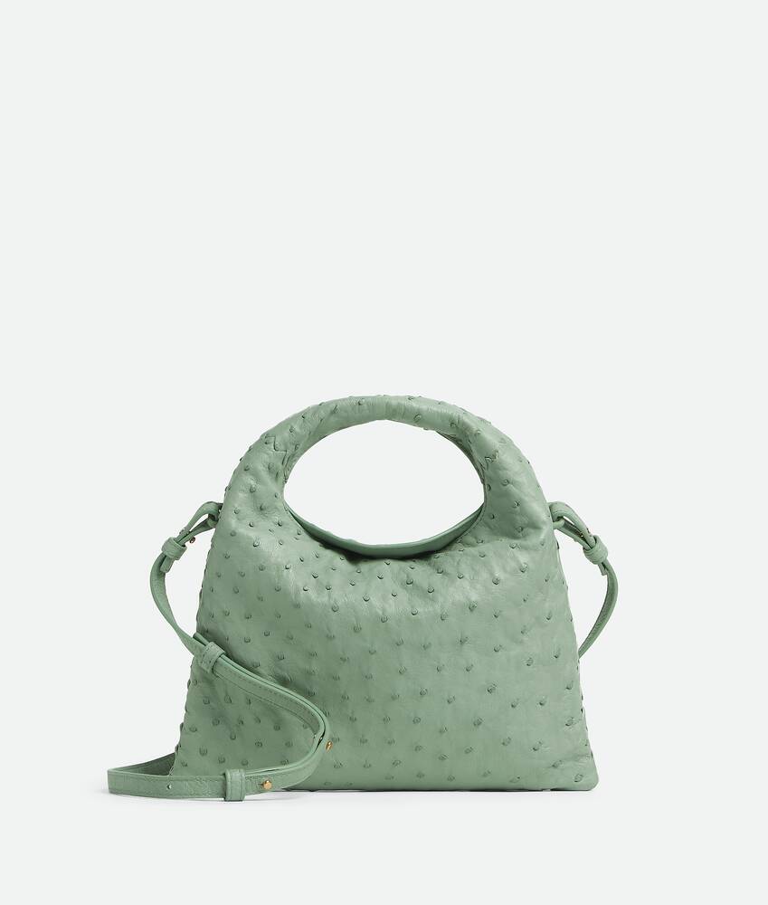 • Bolsa cross-body míni em couro de avestruz com alça removível • Um bolso interno com zíper • Fecho de aba protegido com ímã