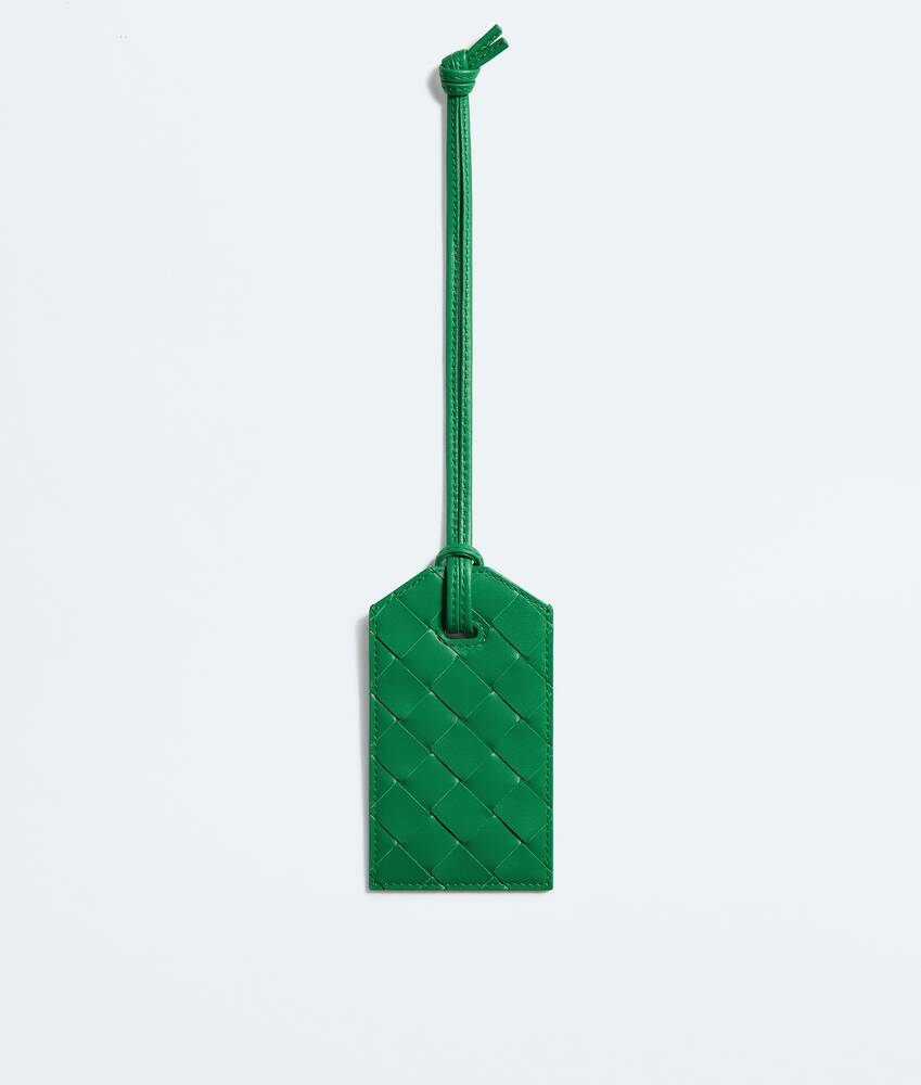 Porta-etiqueta de bagagem em couro de bezerro Intrecciato com alça.