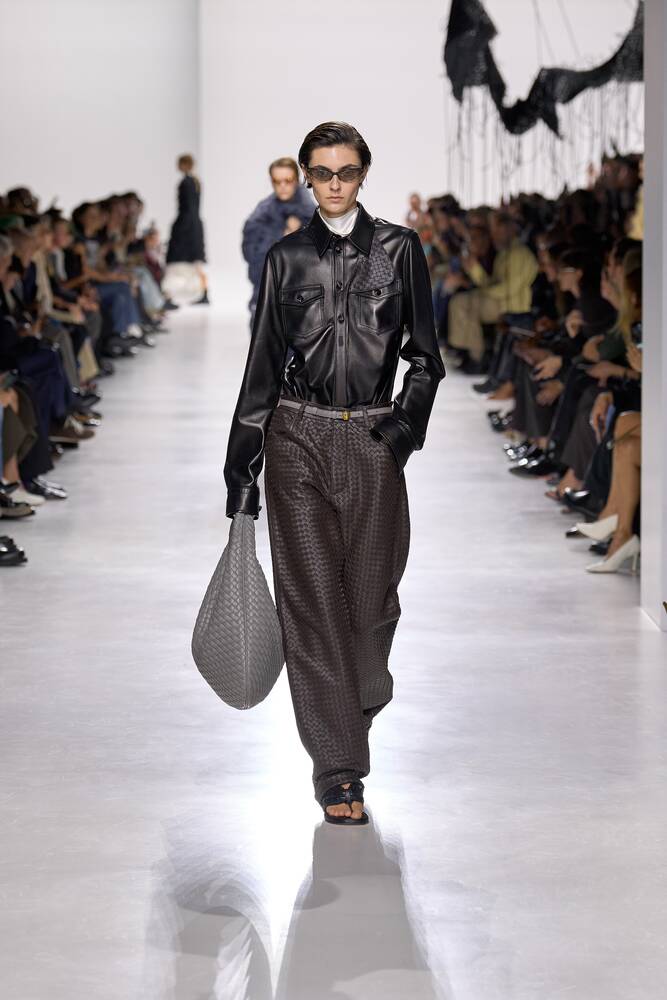 Intrecciato编织皮革长裤
